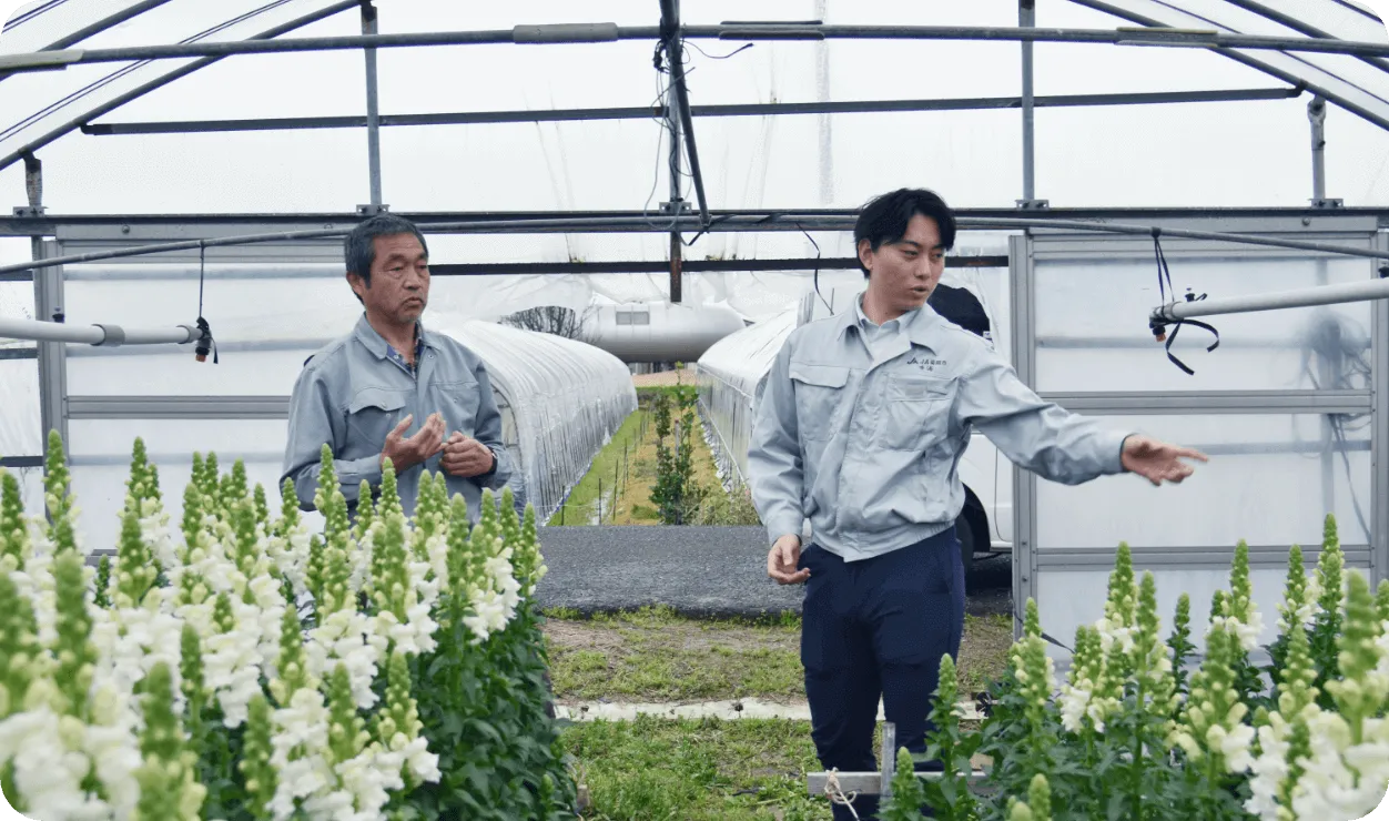 JAの仕事を知ったのは、子どもの頃のこと。家族が昔からJAにお世話になっており、日々の暮らしのなかに「JAさん」がいる環境で育ったことから仕事に興味を持ち、就職活動時にも希望する進路のひとつに挙げていました。入組の決め手になったのは、幼少の記憶に近しい「農業」に携わる職種に就けるという点。大学では農業を学んでおらず、本当にゼロからのスタートでしたが、毎日先輩や組合員の方々にいろいろなことを教えていただきながら成長を実感しています。知識やスキルがなくても、「やりたい気持ち」があれば必ず成長していける環境です。
